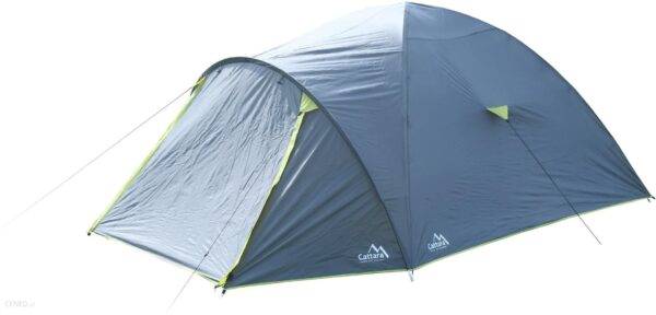 Dwuwarstwowy namiot turystyczny Cattara PULA, 4-osobowy, 344x250x150 cm Namiot dwuwarstwowy z przedpokojem na każdą pogodę. Wymiary 250 x 344 (100 + 244) x 150 cm. Przestronny namiot odpowiedni dla 4 osób.Namiot posiada przedpokój z wejściem od frontu, który jest wyposażony w zamek błyskawiczny od wewnątrz i od zewnątrz. Istnieje również moskitiera zapewniająca wystarczającą ochronę przed komarami i innymi owadami. Wewnątrz namiotu znajdują się boczne kieszenie do przechowywania różnych przedmiotów. Tył namiotu i górna część wyposażona w okienko wentylacyjne z regulowanym daszkiem, zapewniające optymalną cyrkulację powietrza.Namiot jest wykonany z dwuwarstwowego, wodoodpornego materiału, testowanego przy słupie wody 3000 mm (PU 3000), co zapewnia znaczną redukcję wilgotności wewnątrz namiotu. Namiot ma również klejone szwy, co zapobiega przenikaniu wilgoci i wody. Podłoga jest wzmocniona i podniesiona. Konstrukcja prętów nośnych wykonana jest z wytrzymałych włókien szklanych. Samo kotwienie jest za pomocą szpilek i regulowanych lin.Dzięki wymiarom opakowania 62 x 15 x 15 cm namiot jest kompaktowy i łatwy do przenoszenia.