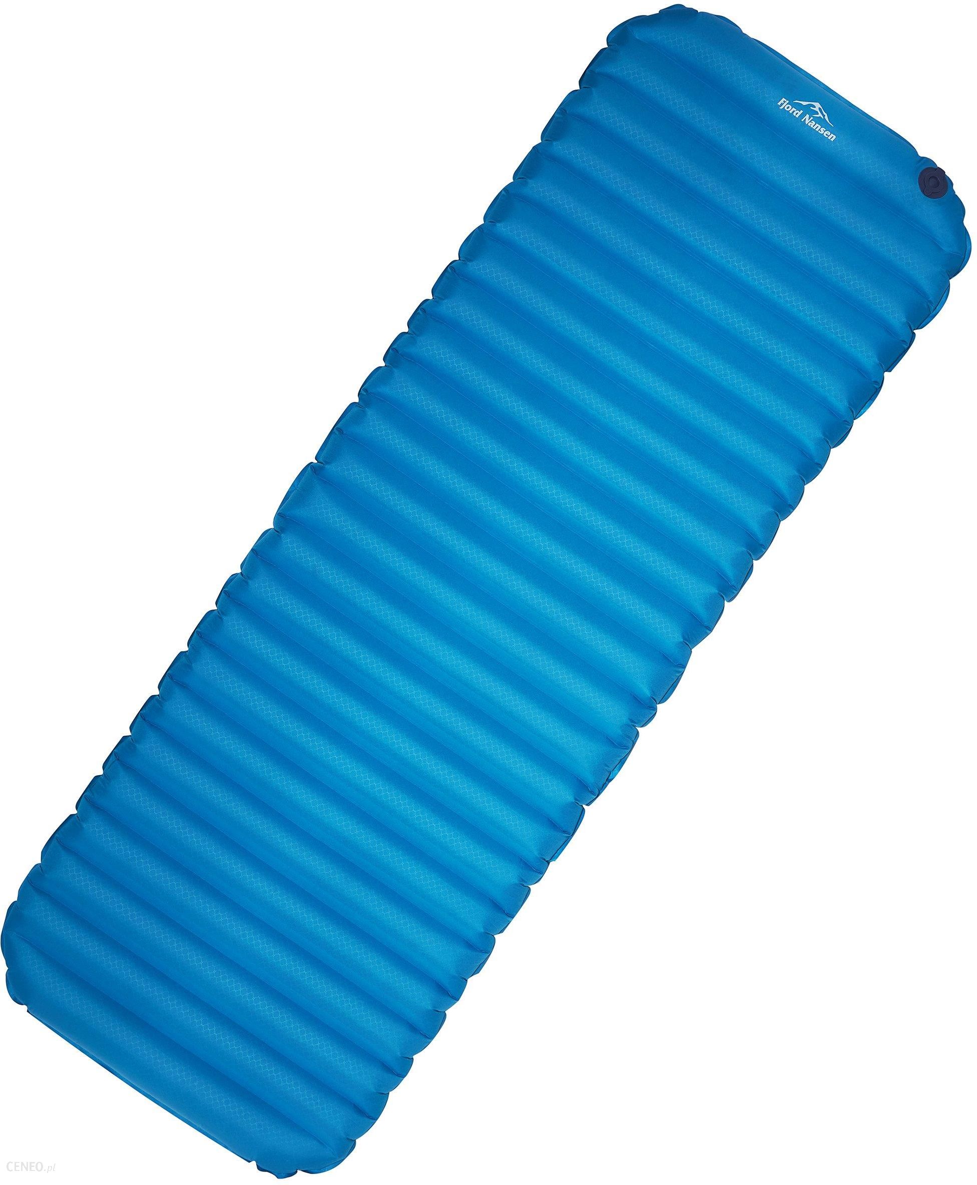 Niezwykle lekki i łatwy w transporcie materac dmuchany, wykonany z wytrzymałego i odpornego na przetarcia nylonu 75D. Dzięki nowej konstrukcji zaworu powietrze podczas dmuchania nie cofa się, a jego wypuszczanie jest równie proste.Poprzeczny układ komór zwiększa komfort użytkowania, jednocześnie zmniejszając wagę i wymiary materaca po złożeniu.Materac doskonale sprawdzi się na campingu, podczas wypraw bushcraftowych czy całonocnego wędkowania.W komplecie z materacem znajduje się pokrowiec transportowy.Dane techniczneMateriał: nylon 75DKształt: prostokątnyKolor: niebieskiWymiary: 1840× 650 × 85 mmWymiary po złożeniu: 230 x 100 mmWspółczynnik R-Value: 2.2Waga: 780 gProducent: Fjord Nansen, Polska