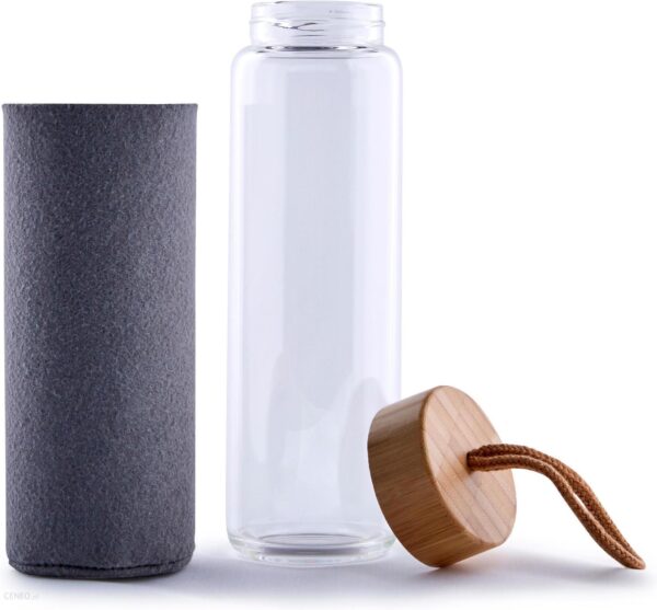 Bidon o pojemności 500 ml. Do nawadniania się przed zajęciami jogi, w ich trakcie i po zakończeniu. Z pracy na zajęcia: szklany bidon o prostym designie i łatwy w konserwacji. W zestawie filcowy pokrowiec dla ochrony i izolacji termicznej. Szeroki otwór dla optymalnego czyszczenia; odpowiedni do zmywarki.