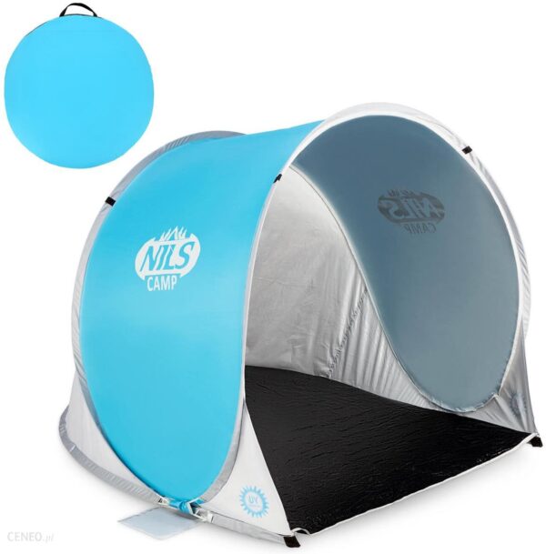 Namiot plażowy z filtrem UF 30spf Nils Camp nc3173Wytrzymałe materiały – gwarancja długotrwałego użytkowaniaWodoodporna podłoga – chroni przed wilgociąPowłoka z filtrem UV – chroni przed słońcemSamorozkładający się – wygoda użytkowaniaNamiot plażowy chroniący przed słońcem i wiatrem Nils Camp NC3173Samorozkładający się namiot plażowy Nils Camp NC3173 skutecznie ochroni przed promieniami słonecznymi i wiatrem podczas wypoczynku na świeżym powietrzu.Doskonale sprawdzi się nie tylko na plaży, ale także w ogrodzie czy gdzie tylko tego potrzebujesz!Wytrzymałe namiot plażowy Nils Camp NC3173Huśtawkę wykonano z wysokiej jakości materiałów, które gwarantują długi czas eksploatacji i komfort podczas użytkowania produktu. Przyjemne w dotyku, oddychające płótno jednocześnie jest bardzo wytrzymałe i wysoce odporne na przetarcia. Co więcej, nie jest wrażliwe na zmienne warunki atmosferyczne, dzięki czemu nie musisz się martwić o zniszczenia nagłym deszczem czy mrozem.Wyprodukowano go z wysokojakościowych materiałów, które zapewniają komfortowy i długi czas użytkowania. Dzięki temu, produkt posłuży przez wiele sezonów.Powłoka namiotu to wytrzymały materiał chroniący przed promieniami UV z filtrem 30spf. Dzięki temu, nawet podczas dużego nasłonecznienia będziesz mógł się schronić przed palącym słońcem.Podłoga namiotu to trwały materiał o właściwościach wodoodpornych. To sprawia, że wilgotny piasek czy trawa nie będą problemem.Samorozkładający się namiot Nils Camp NC3173Stelaż z włókna szklanego jest wytrzymały i elastyczny. Tworzy stabilną i pewną konstrukcję.Co więcej, namiot ma funkcję składania, a także samodzielnego rozkładania. Dzięki temu, przechowywanie i transportowanie namiotu jest bezproblemowe. Dodatkowym ułatwieniem jest zamykany na zamek błyskawiczny pokrowiec z uchwytem do noszenia.