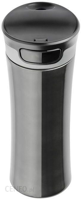 Niesamowity gadżet łączący w sobie poręczność kubka termicznego z właściwościami termosu.Pojemność 400 ml.Wykonany z metalu i tworzywa, wnętrze ze stali nierdzewnej.Utrzymuje temperaturę aż do 10 h.Wieczko otwiera się za pomocą specjalnego przycisku.Kubek niekapek, zapewniający bardzo wysoki poziom szczelności.