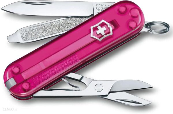 Kieszonkowy, funkcjonalny scyzoryk-brelok w oprawie z przeźroczystego celidoru.Funkcje:1. ostrze2. pilniczek do paznokci z:3. – śrubokrętem4. nożyczki5. kółko do kluczy6. pęseta7. wykałaczkaSzwajcarski scyzoryk w nowym, intensywnym kolorze, spakowano w prezentowe pudełko.Dane techniczneKolor: Cupcake DreamDługość: 58 mmWysokość: 9 mmWaga: 21 gProducent: Victorinox, Szwajcaria