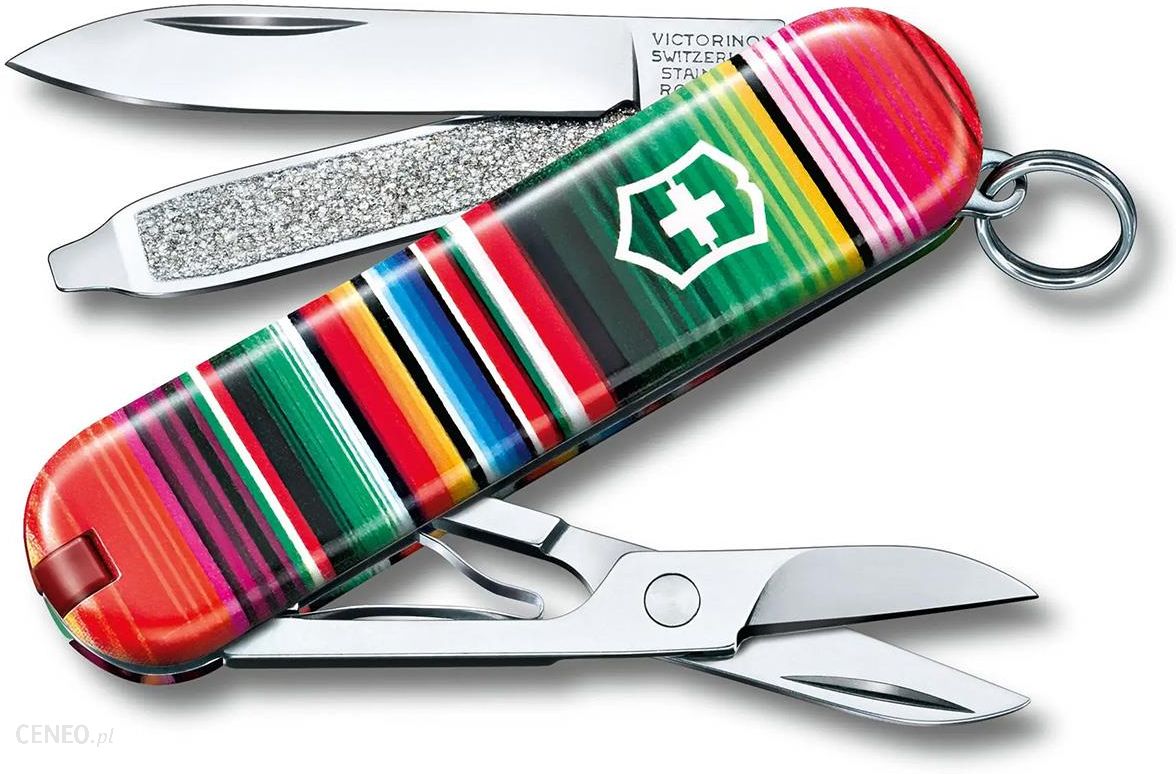 Limitowana edycja kieszonkowego, funkcjonalnego scyzoryka-breloczka w oprawie z celidoru z naniesioną wielokolorową grafiką. Edycja limitowana scyzoryków z wzorami z całego świata.Funkcje:1. ostrze2. pilniczek do paznokci z:3. – śrubokrętem4. nożyczki5. kółko do kluczy6. pęseta7. wykałaczkaDane techniczneDługość: 58 mmWysokość: 9 mmWaga: 21 gProducent: Victorinox, Szwajcaria